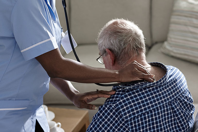 Female doctor doing medical examination of a senior man