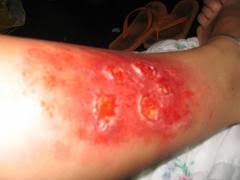 Heat burns occur when some or all of the different layers of cells in the skin are destroyed by a hot liquid (scald), a hot solid (contact burn) or a flame (flame burn). Skin injuries due to ultraviolet radiation, radioactivity, electricity or chemicals, as well as respiratory damage resulting from smoke inhalation, are also considered as burns.